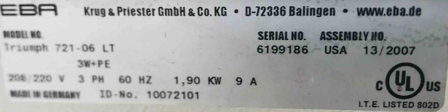 208/220 Volts, 60 Cycle, 3 Phase, 9 Amps.