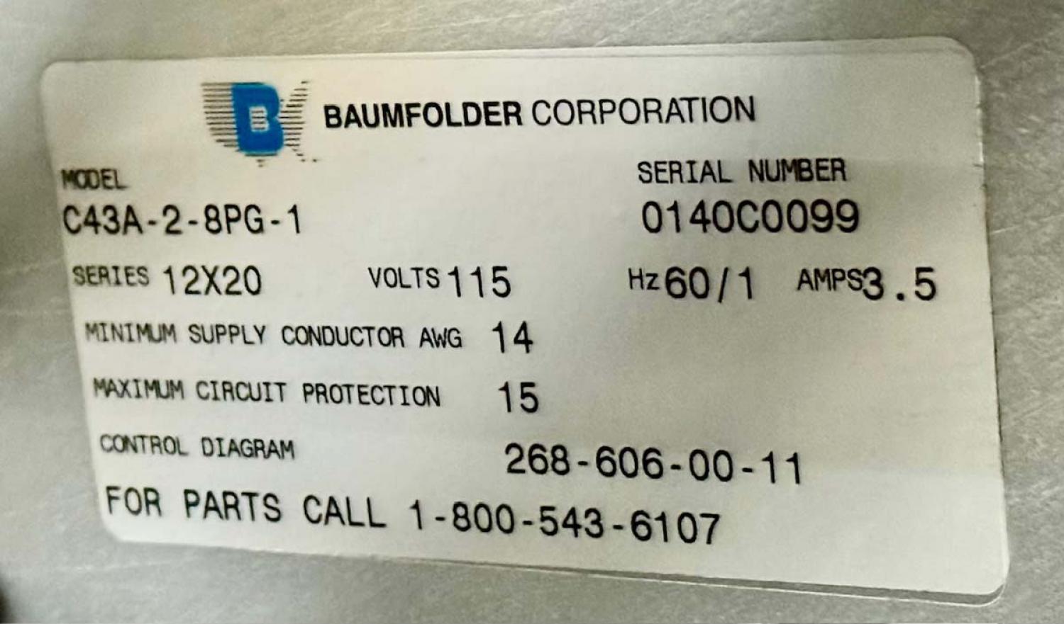 Baum 714XLT Vacuum Feed Folder #014EO190 and Roll Away Right Angle #014OC0099