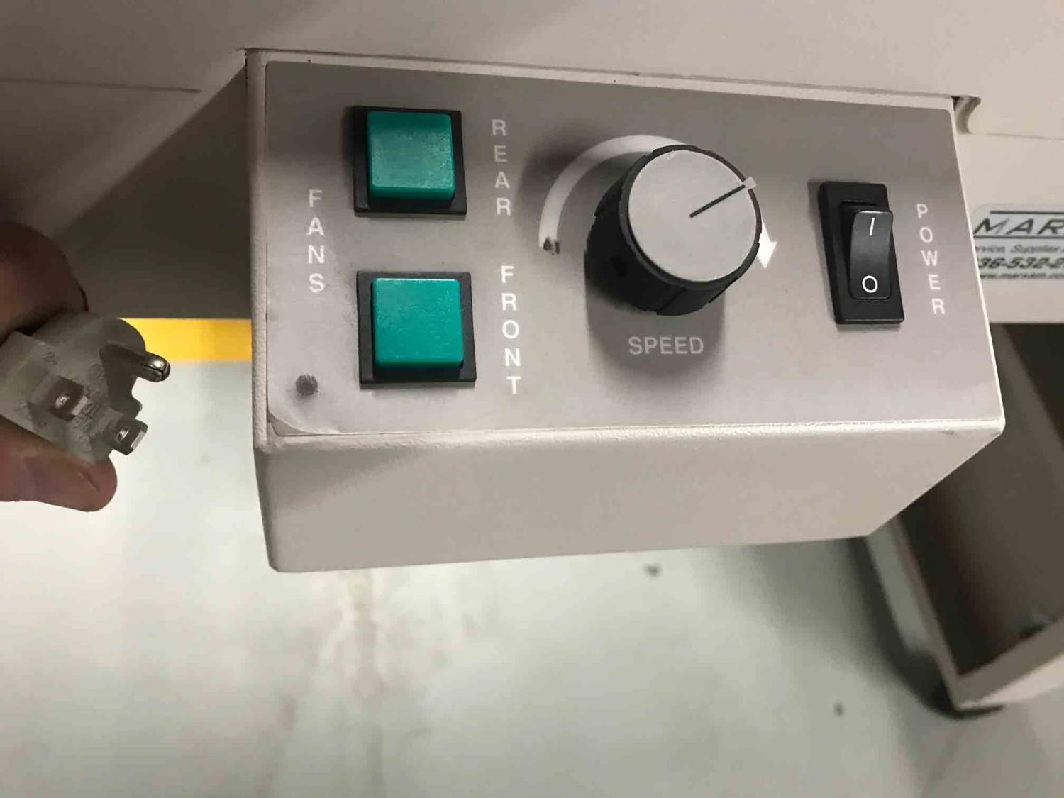 Conveyor 4' with Adjustable Speed Control and Drop Chute Delivery.