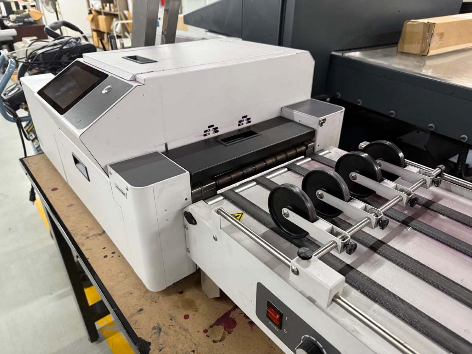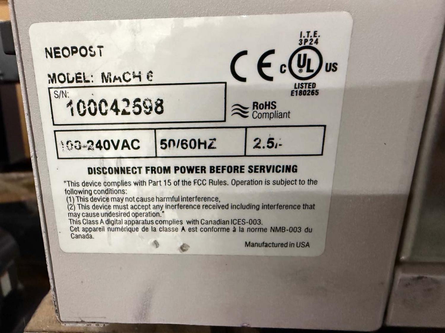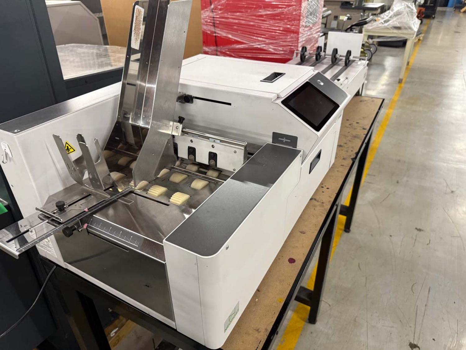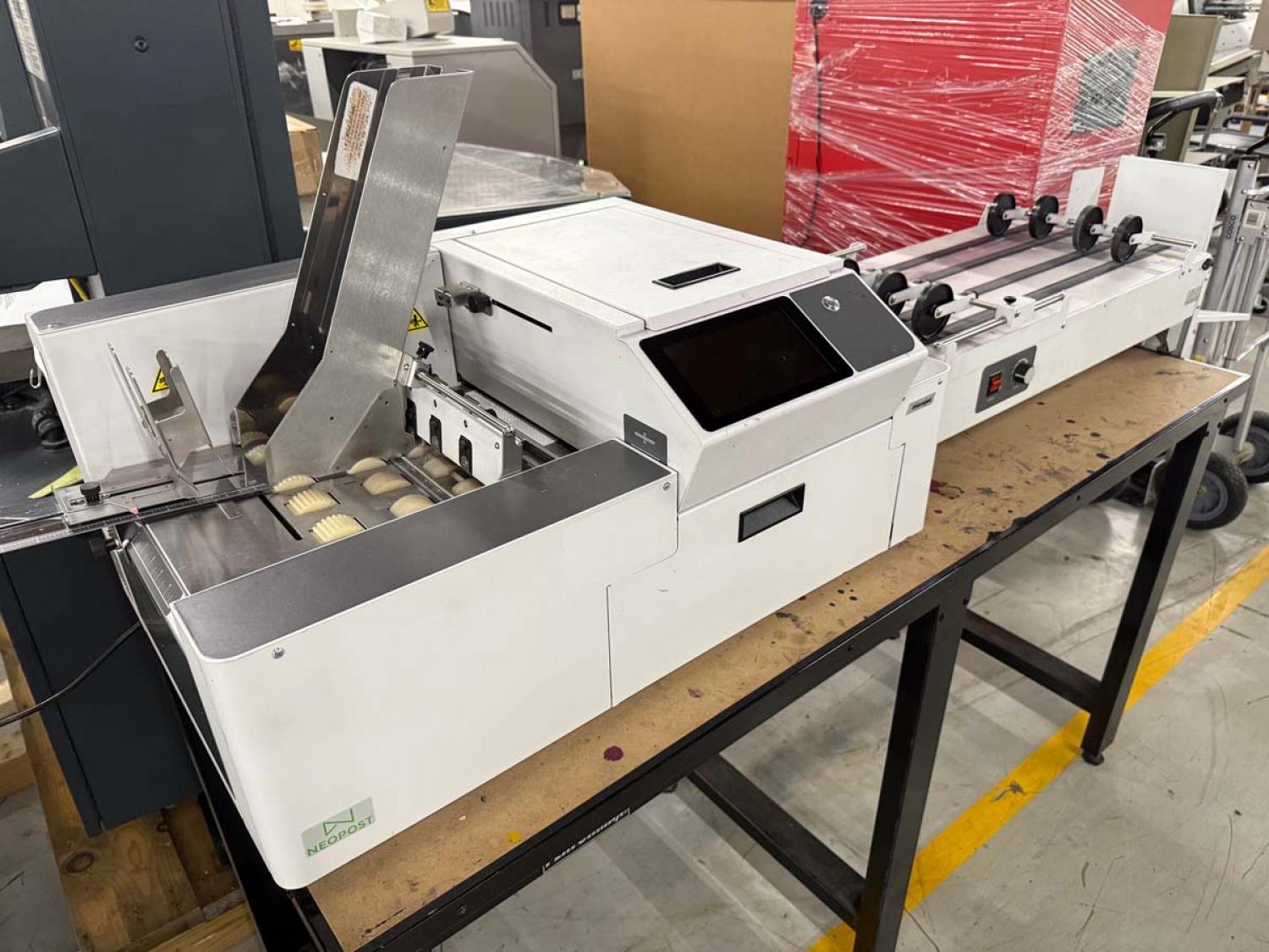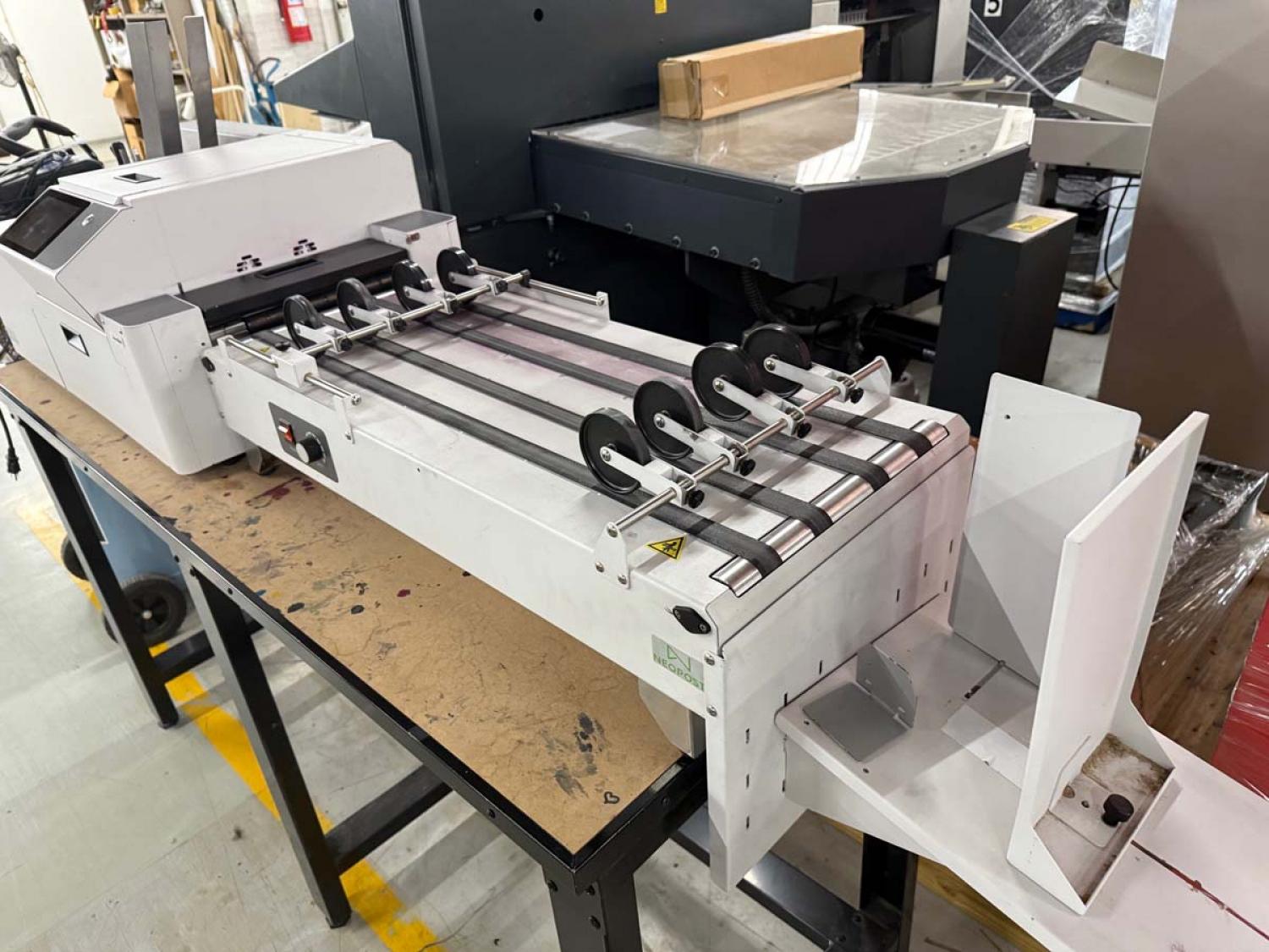 Neopost Quadient Mach 6 Memjet Digital Printing System #100042598 including Product Feeder, Conveyor Delivery and Floor Stand.