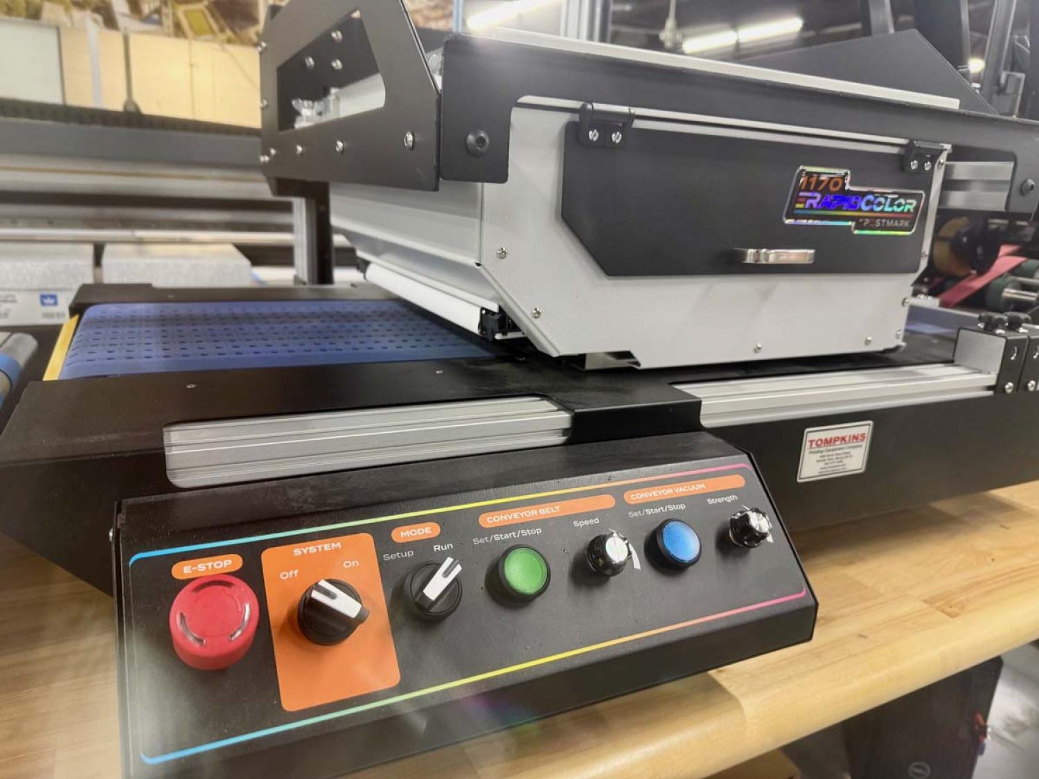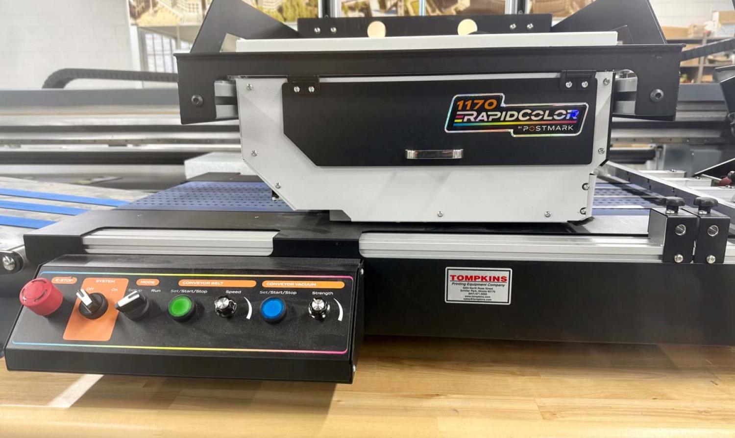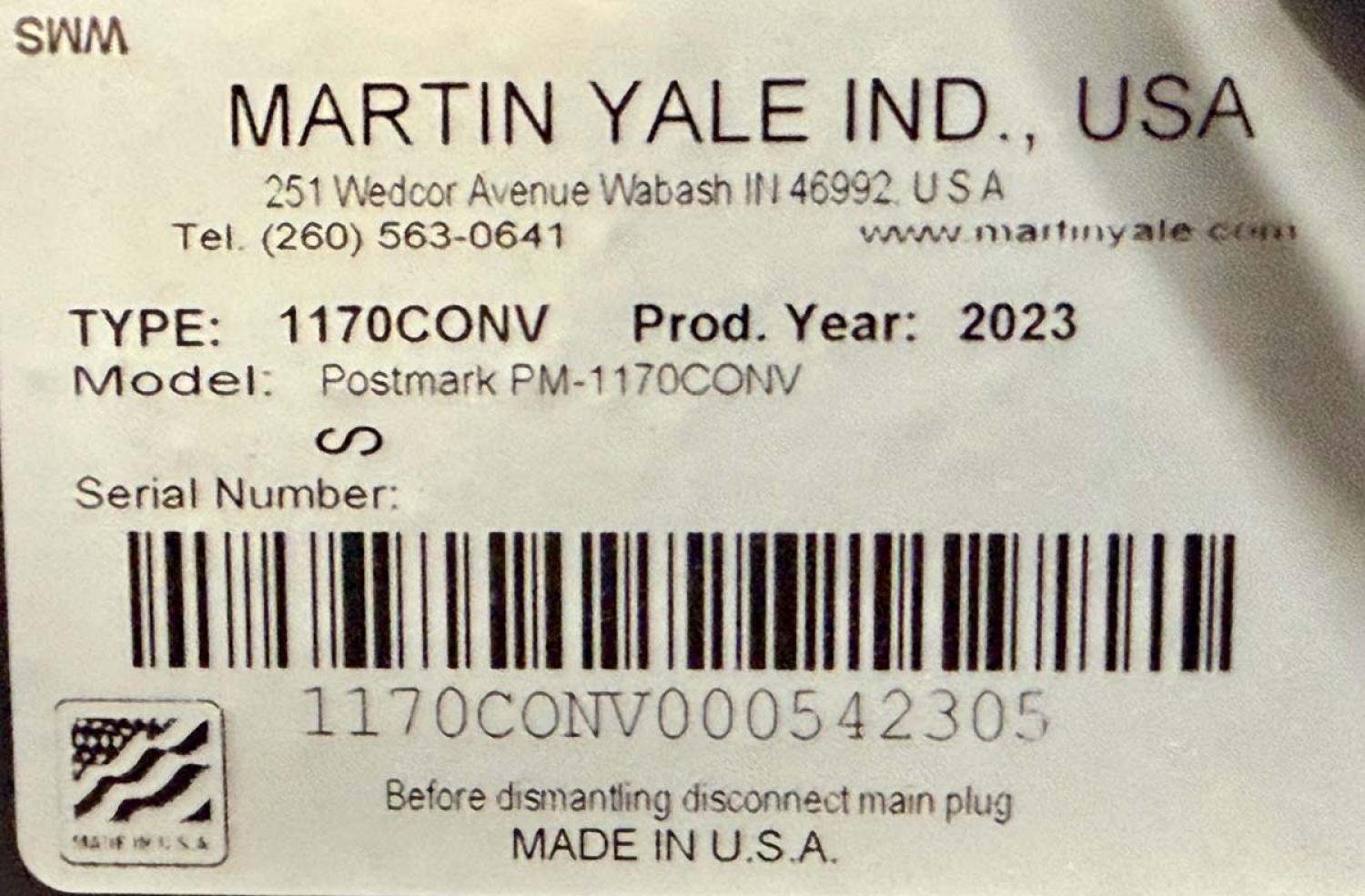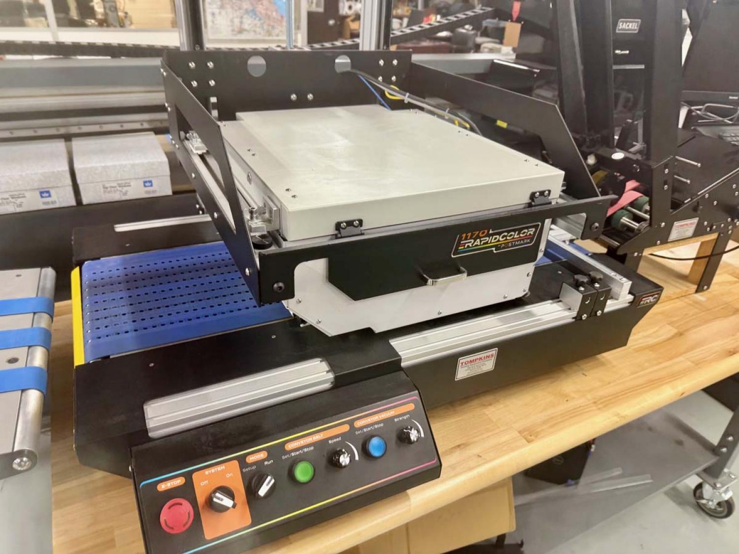 Postmark 1170 Ink Jet Print System with Feeder and Delivery. From local in-plant print closure with low usage in excellent condition.